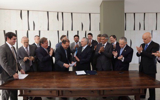 Logo após ter sido notificado da decisão do Senado Federal, que aprovou na manhã desta quinta-feira [12] a abertura de processo de impeachment e o afastamento por até 180 dias de Dilma Rousseff da Presidência da República, a assessoria do vice-presidente Michel Temer anunciou os nomes dos ministros que integrarão o ministério do novo governo.