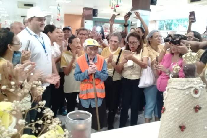 A devota italiana Emma Morosini, de 95 anos, que veio caminhando do estado do Maranhão, ela saiu de São Luís no dia 16 de janeiro rumo a Belém para encontrar a imagem peregrina de Nossa Senhora de Nazaré, chegou à Basílica Santuário de Nazaré por volta das 11 horas desta sexta-feira, 15.
