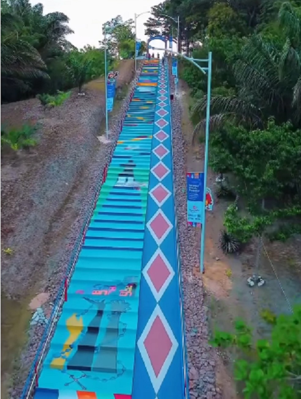 A escadaria do mirante, um dos cartões-postais de Bragança, recebeu pintura colorida em cerca de 131 degraus, integrando o espaço ao cenário da celebração. Os elementos artísticos fazem referência à devoção a São Benedito e à Marujada, fortalecendo a identidade cultural bragantina.